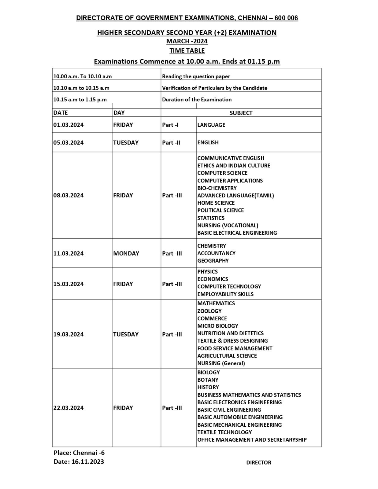 March 1 to March 25, 2024 | TN HSE Exam Dates, 2024 |
